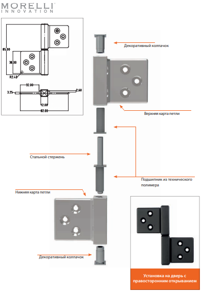 Петля карточная Morelli CH-S 85X82 SC с квадратной осью разобранная