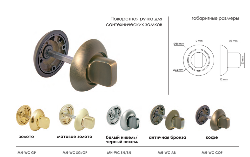 Сантехнические завертки предназначены для запирания двери в ванную или туалет. Изготавливаются из алюминия. Комплектуются по стилю и цвету с дверной ручкой.