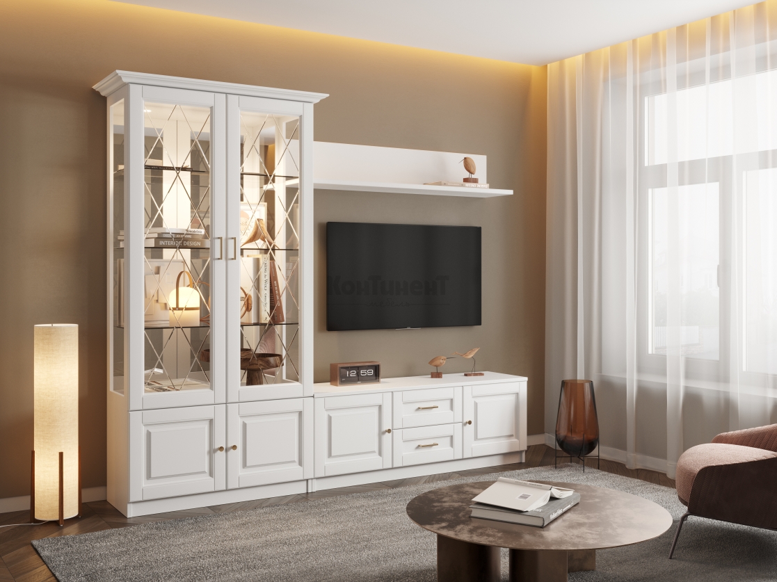 Коллекция «Амели» гармонична – это идеальная симметрия модулей и приятные глазу пропорции, изящная фрезеровка на фасадах из МДФ и отсутствие ярких, режущих взгляд контрастных акцентов.