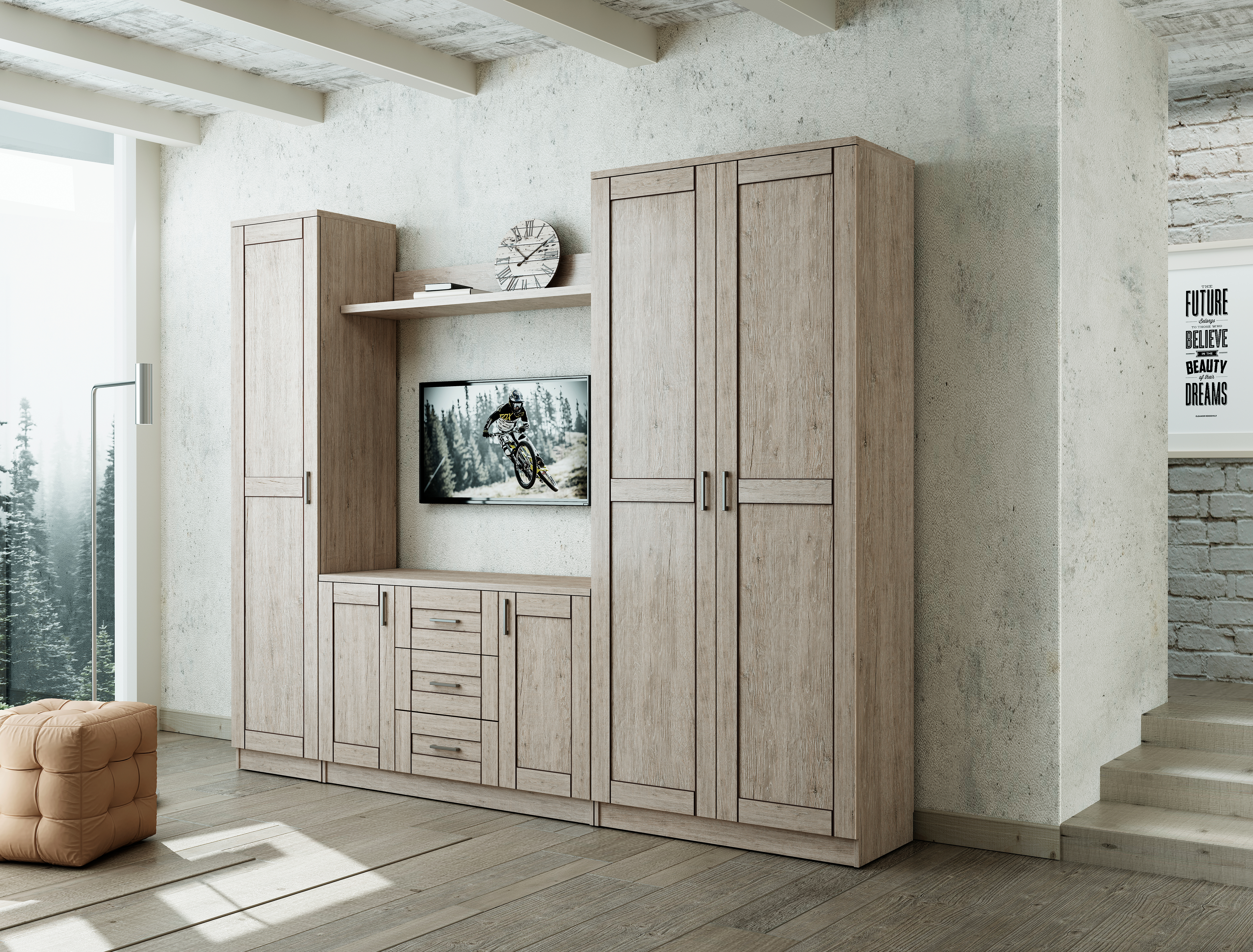 Мебель данной серии отлично подойдет как к стилистической отделке индустриального лофта, так и к более домашнему и уютному деревенскому стилю с одноименным названием «Кантри».