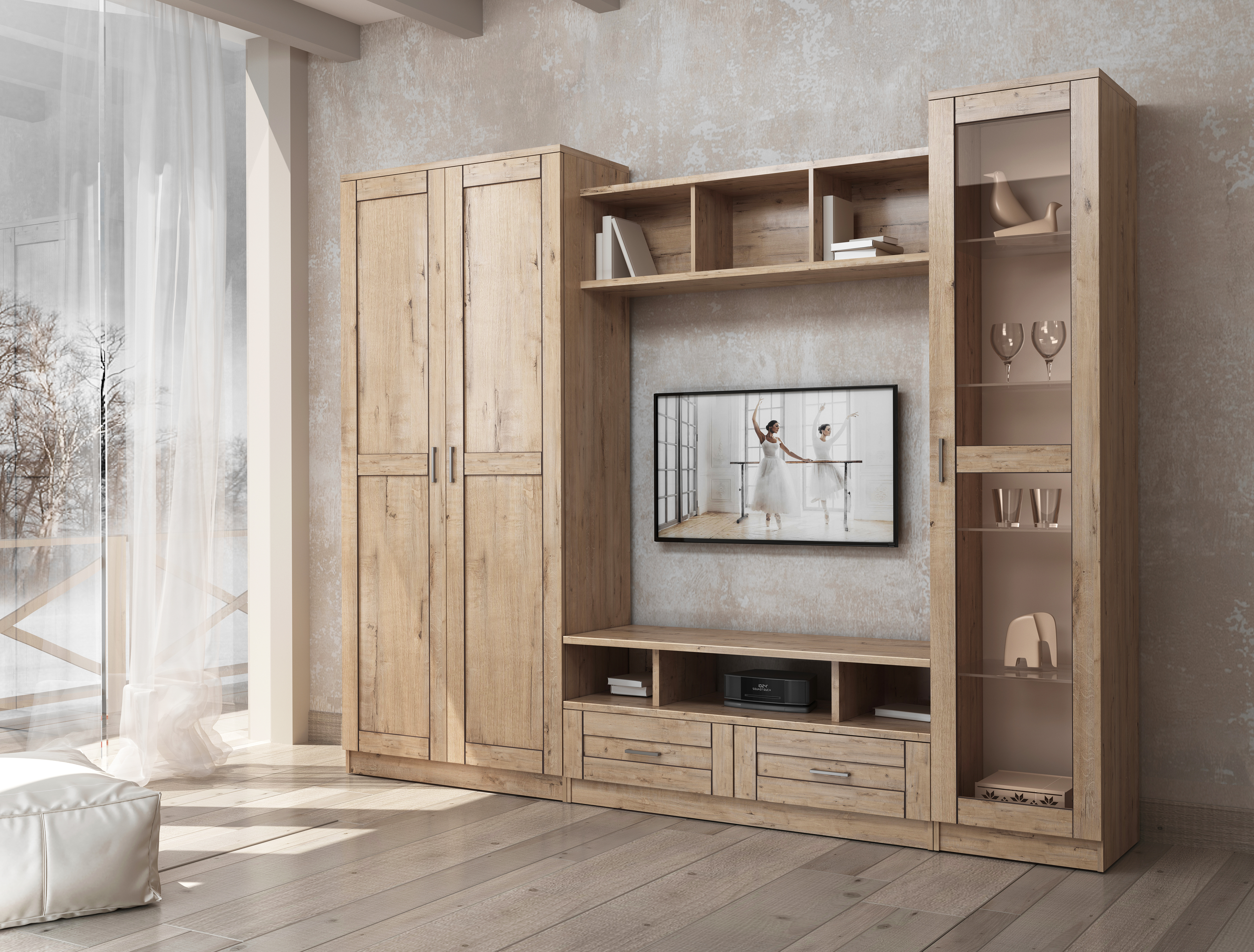 Гостиная «КАНТРИ» для тех, кто не любит излишеств и предпочитает простоту и стиль. Она поможет создать комнату, в которой приятно отдохнуть или провести время в теплой дружеской атмосфере или семейном кругу.