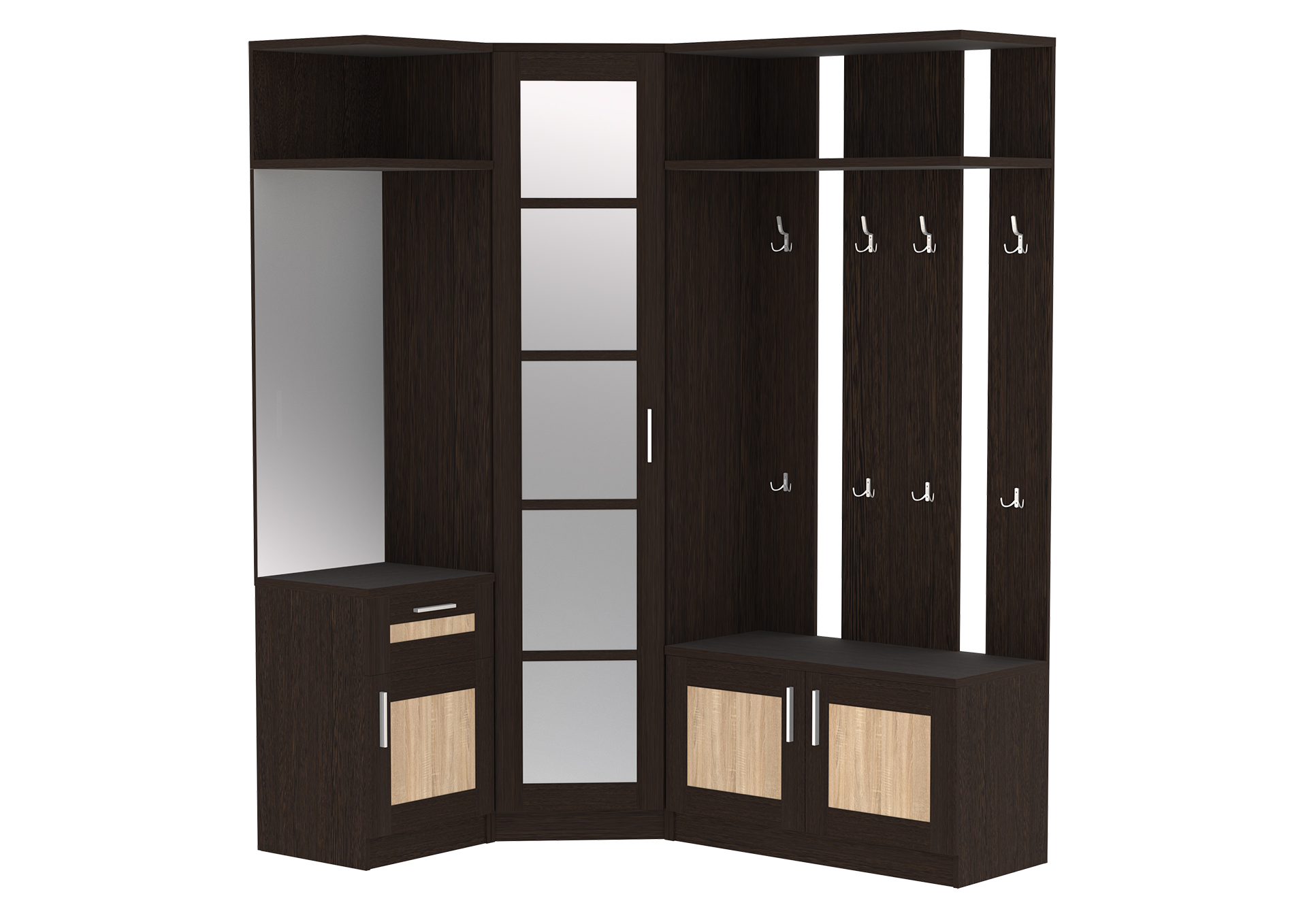 - фасад – оригинальный рамочный МДФ профиль Сэндай, вставка – ЛДСП 10 мм или прозрачное стекло 4мм, или зеркало (серебро) 4мм, часть фасадов с перемычками;