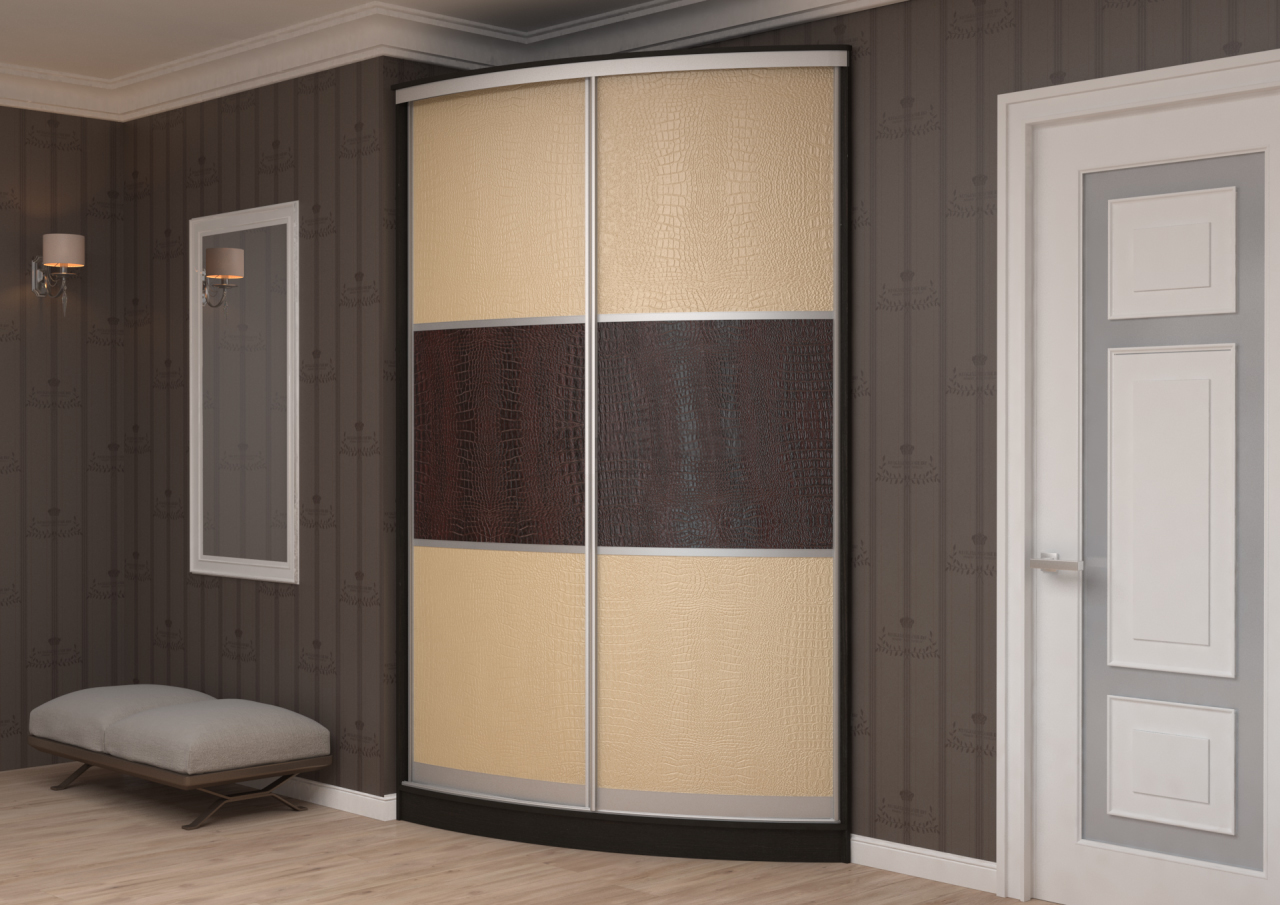 Радиусные профили шкафов позволяют двигаться не по одной плоскости, а по окружности, обеспечивая необычный внешний вид шкафа. При этом внутренняя конструкция радиусного шкафа считается невероятно удобной, из-за отсутствия углов, нет неудобных полочек или иных предметов, препятствующих свободному расположению вещей. Радиусные шкафы могут быть вогнутые и выгнутые.
